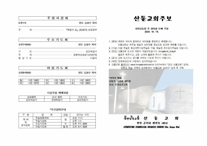 20251019 주보 페이지 정보 작성자 관리자 조회 25회 작성일 2025.10.18 본문 20251019 성령강림절 후 열아홉 번째 주일 목록 다음글20251012 주보 - 25.10.11