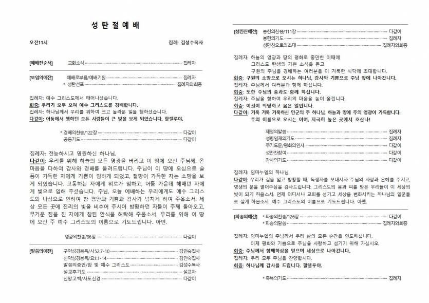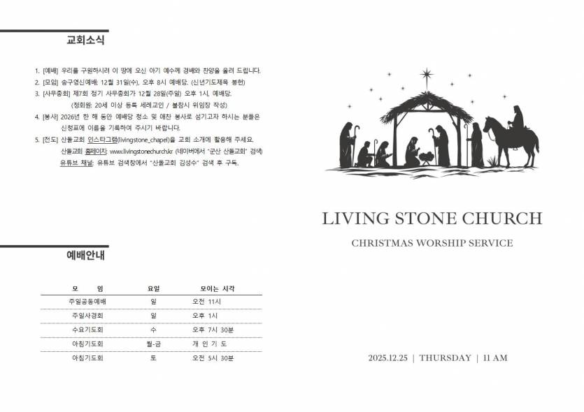 20251225 주보 페이지 정보 작성자 관리자 조회 168회 작성일 2025.12.24 본문 20251225 성탄절 목록 이전글20251228 주보 - 25.12.27 다음글20251221 주보 - 25.12.20